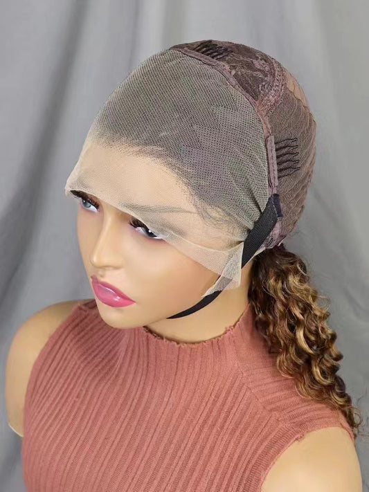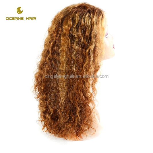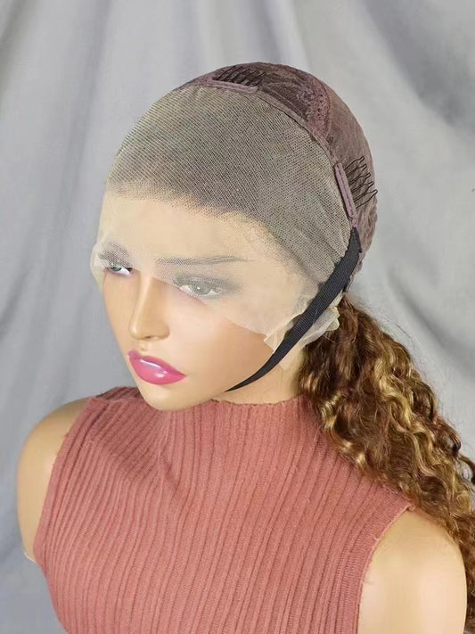 13x4 Lace Frontal Virgin Transparent Human Hair Wigs 130% Remy Curly P4/27 Colored Wig Human Hair