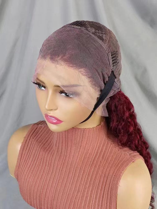 13x4 Lace Frontal Deep Wave Wig #99J Color Brazilian Human Hair