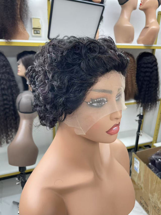 Afro Wig Short Sassoon Straight Brazilian Raw Indian Virgin 180% Density Human Hair hd Transparent swiss Lace Front Frontal Wig