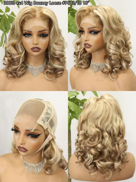 300% 4x4 Lace Closure Bouncy Loose Wig Brazilian Human Hair