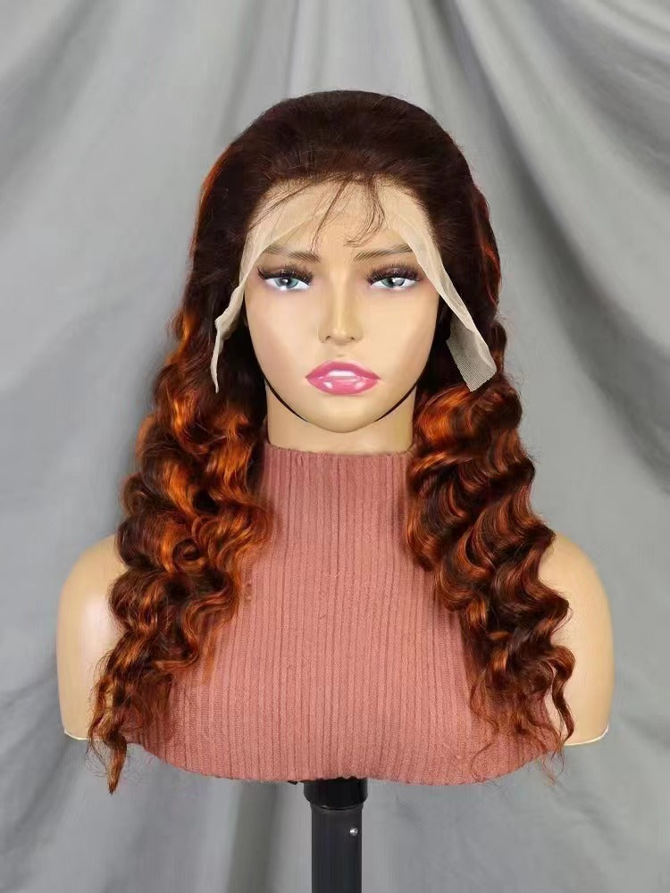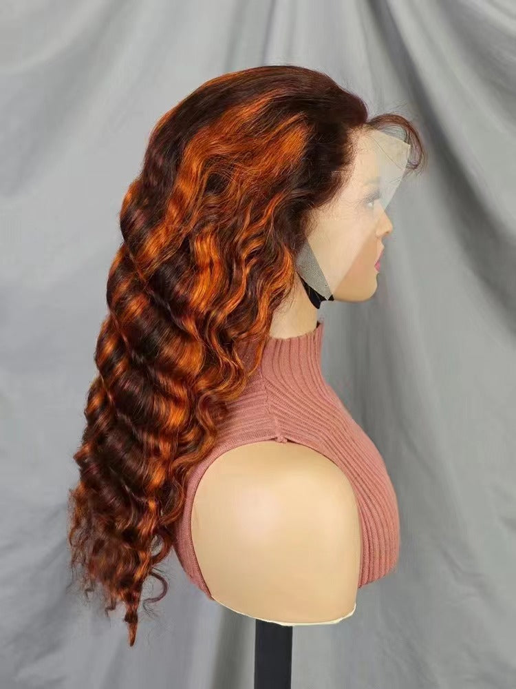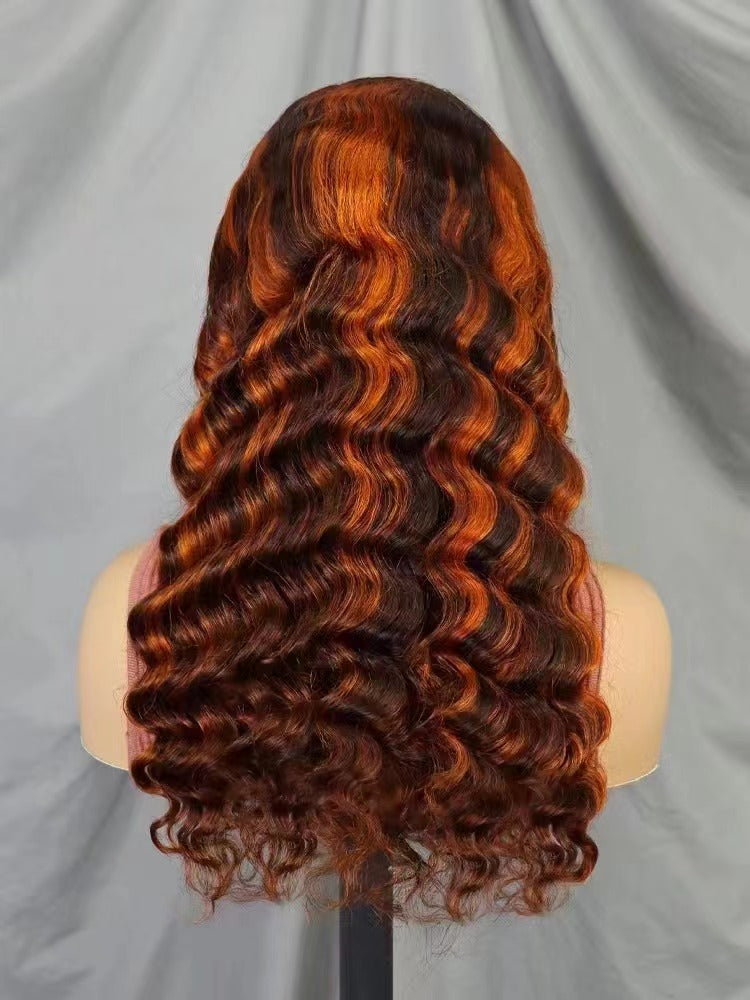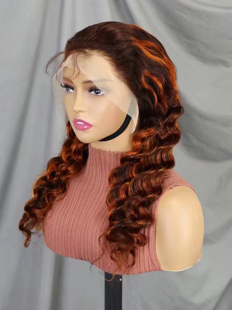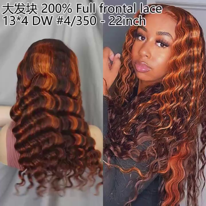 13x4 Lace Frontal Deep Wave Wig #4/350 Color Brazilian Human hair