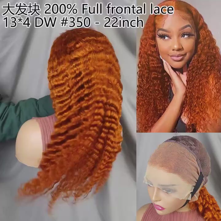 13x4 Lace Frontal Deep Wave Wig #350 Color Brazilian Human Hair