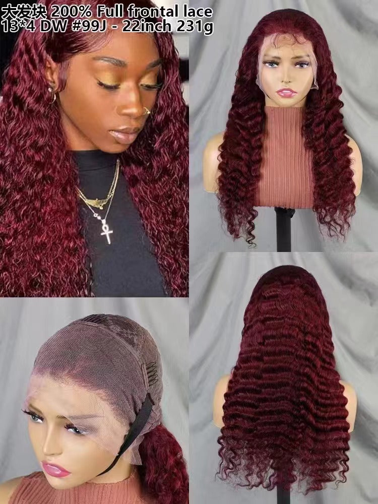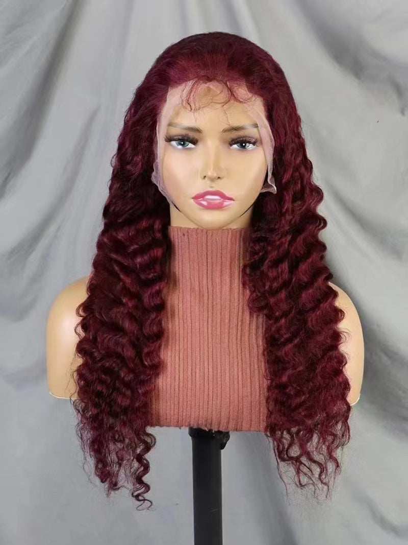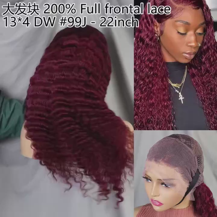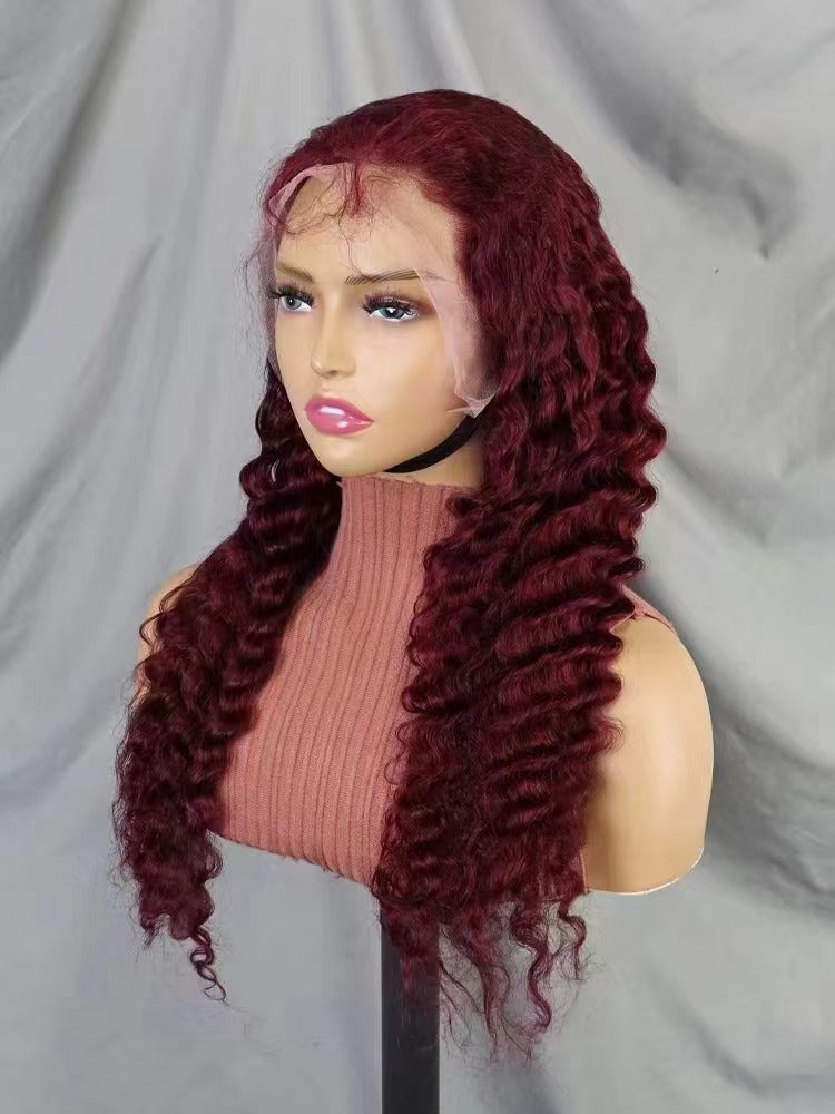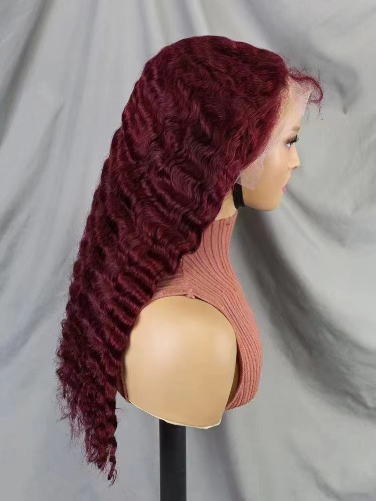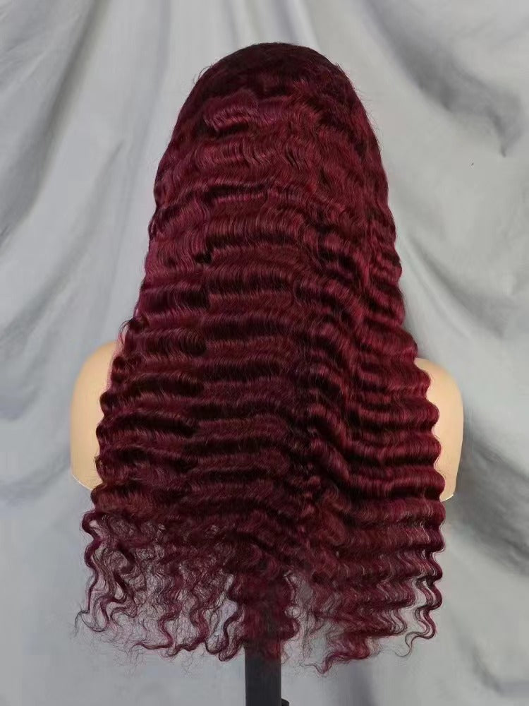 13x4 Lace Frontal Deep Wave Wig #99J Color Brazilian Human Hair