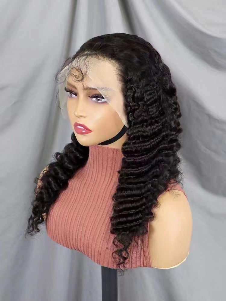 13x4 Lace Frontal Deep Wave Wig Natural Color Brazilian Human Hair