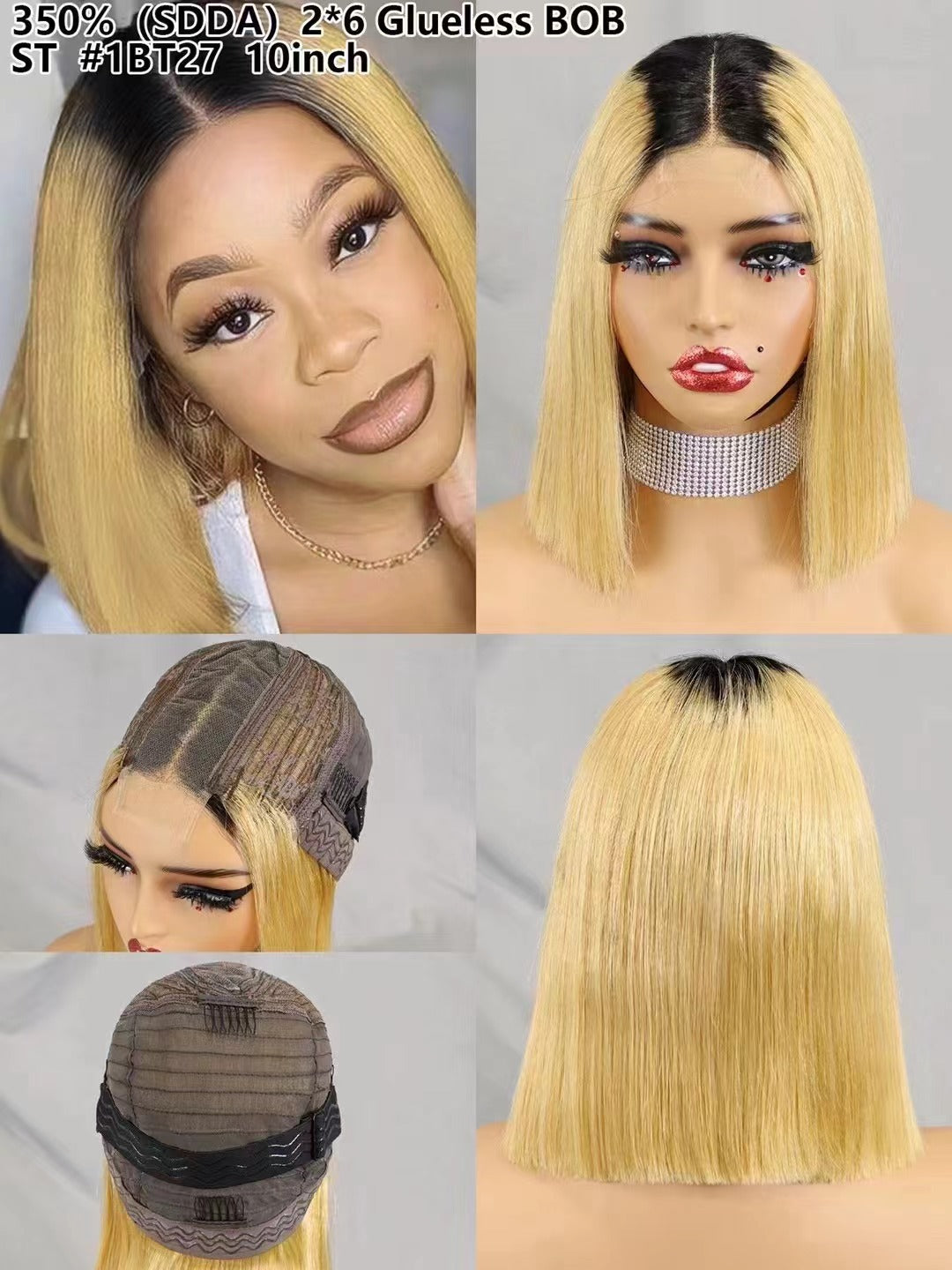 2×6 Lace #1BT27 Human Hair Bob Wig