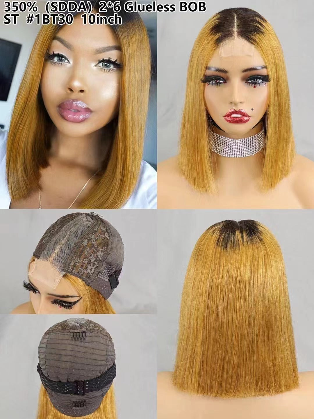 2×6 Lace #1BT30 Human Hair Bob Wig