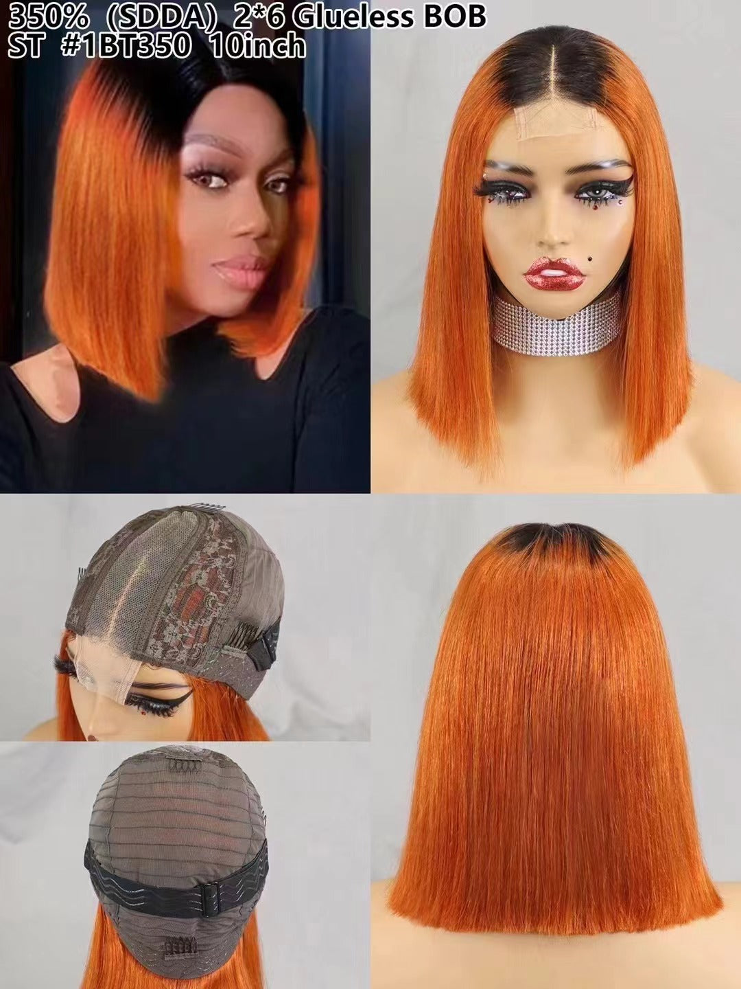 2×6 Lace #1BT350 Human Hair Bob Wig