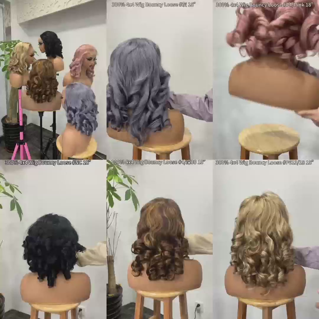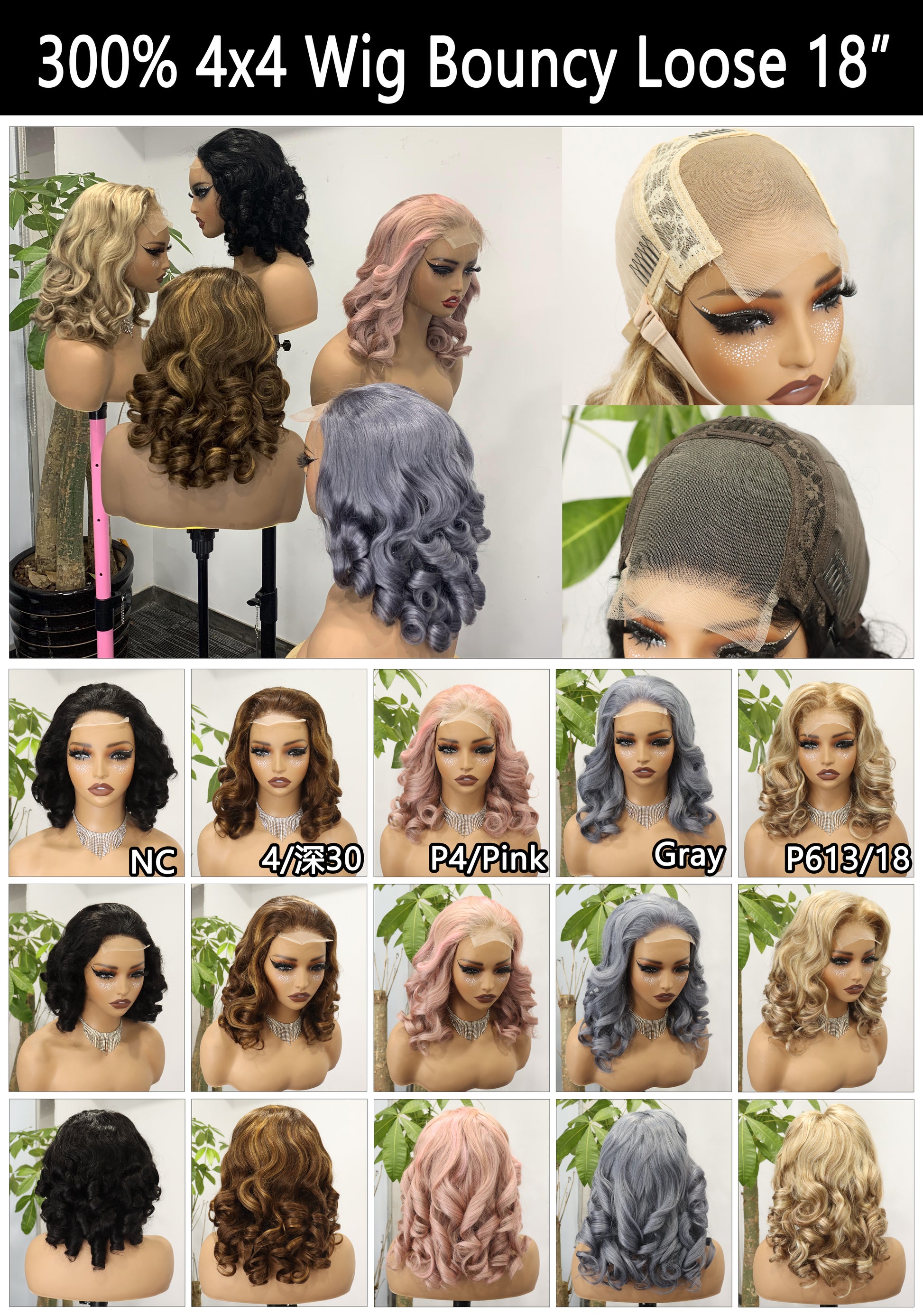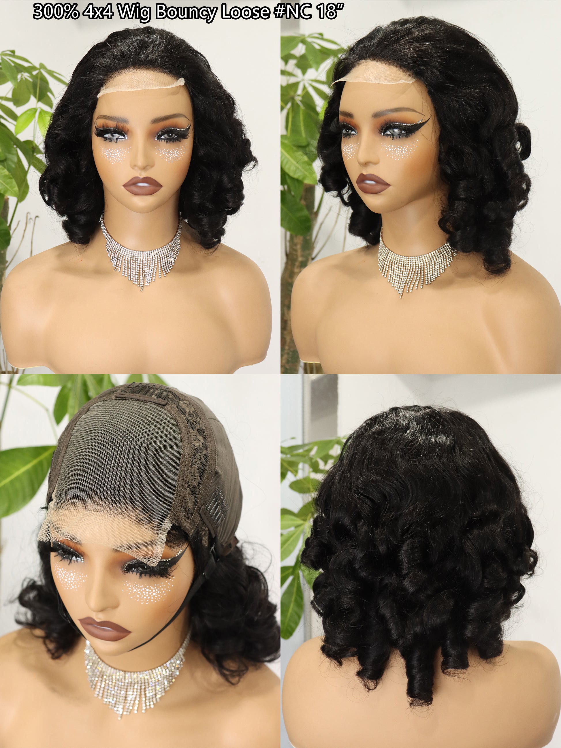 300% 4x4 Lace Closure Bouncy Loose Wig Brazilian Human Hair