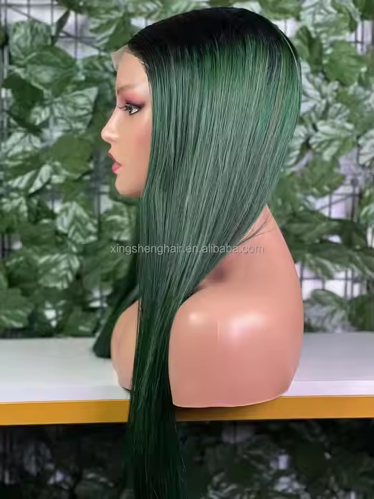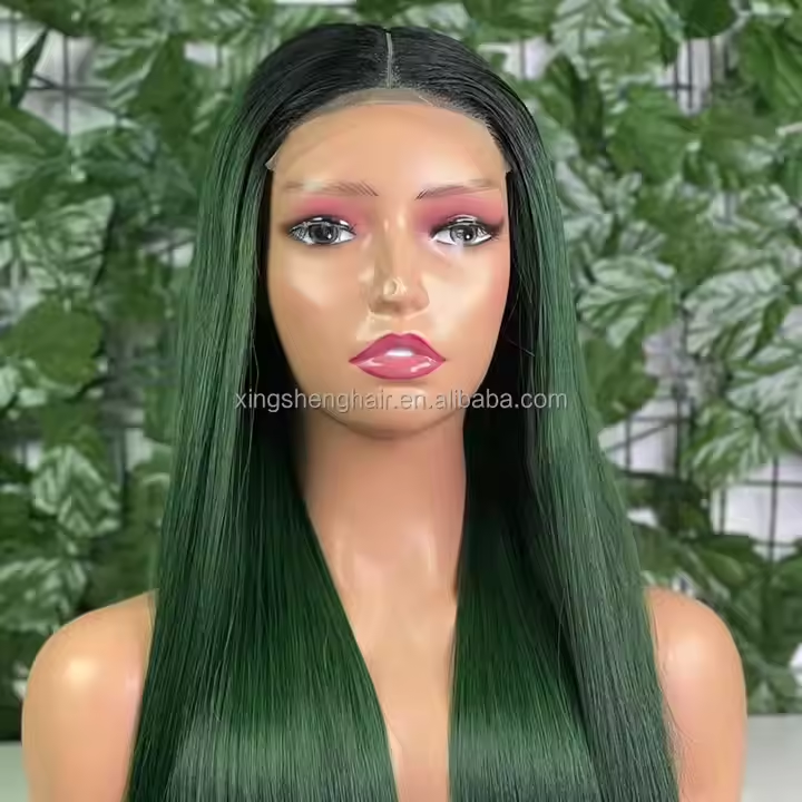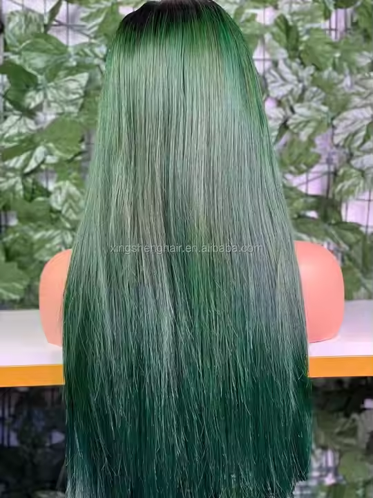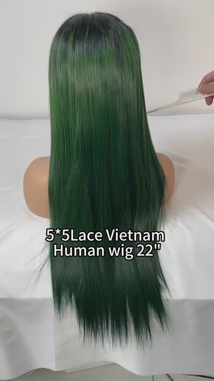 5x5 Lace Closure Vietnamese Bone Straight #T1B/Green Color Wig